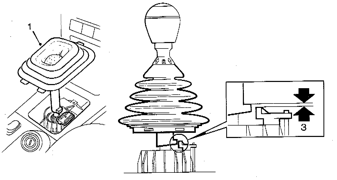 NOTE: Component identifier numbers used in the following illustrations relate to specific steps in the procedures below.GEAR LEVER'S REVERSE GEAR CATCH INSPECTION