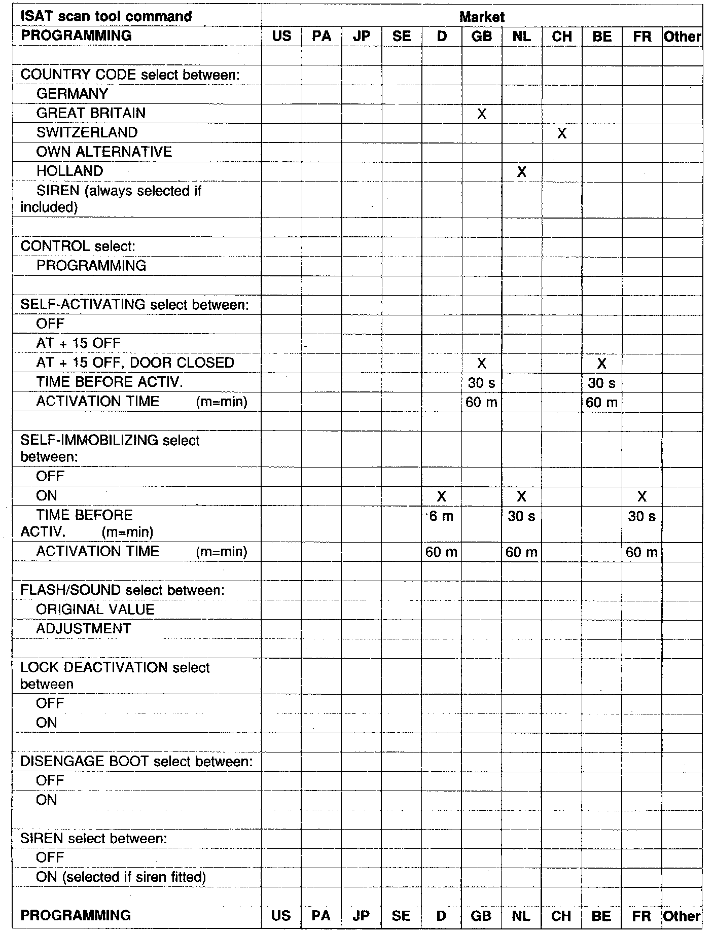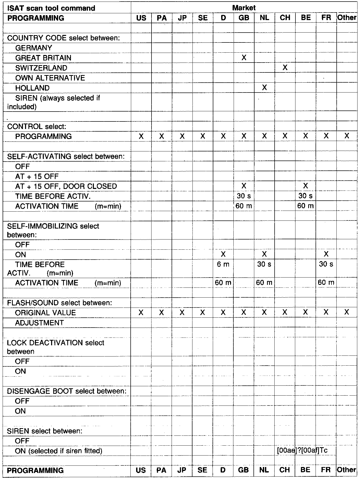 So-called EOL programming is then done in the factory. This cannot however meet the requirements of all countries which means that further programming must be carried out at delivery service, see table.
