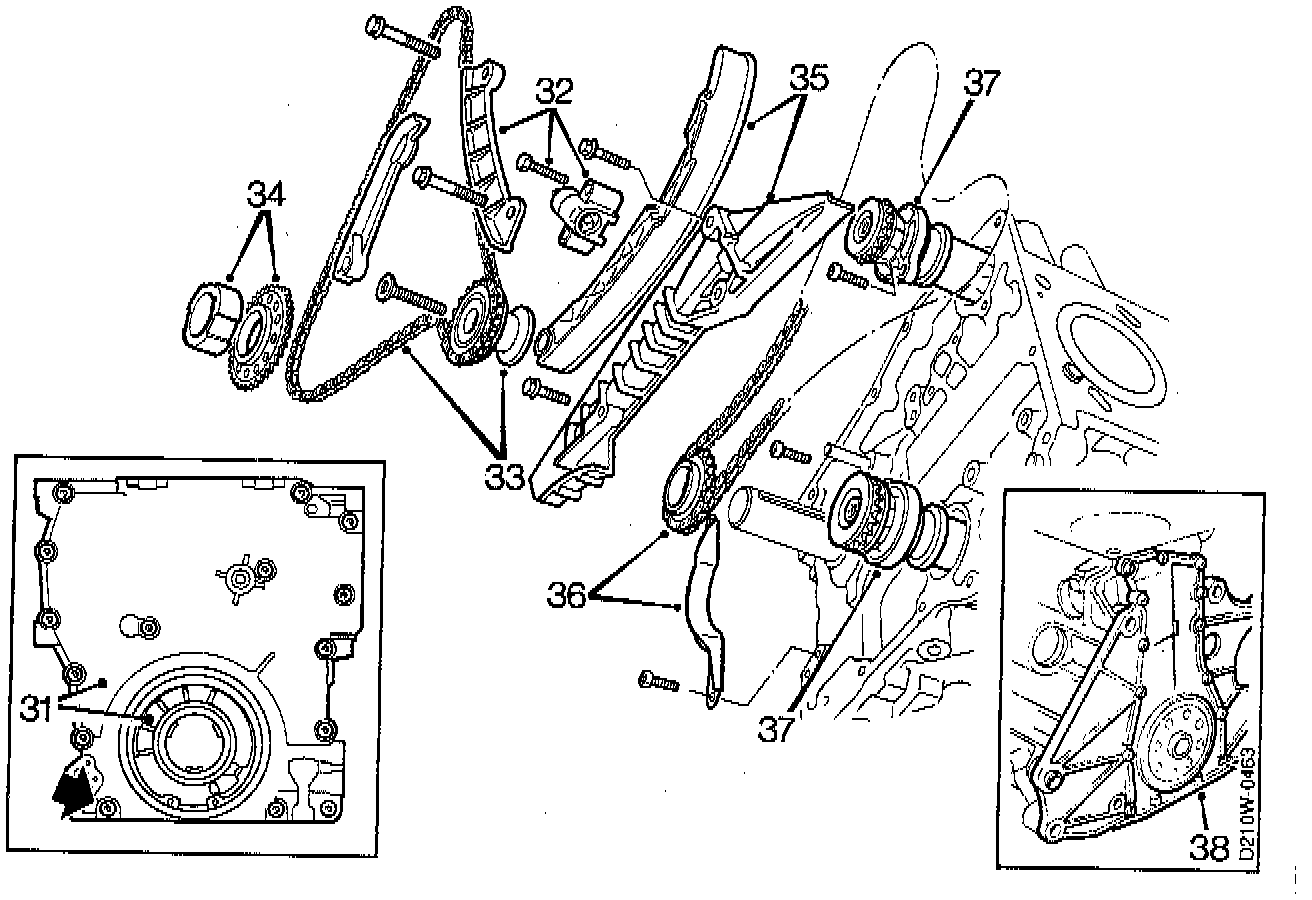 36. Remove the timing chain guard and remove the chain complete with sprocket.