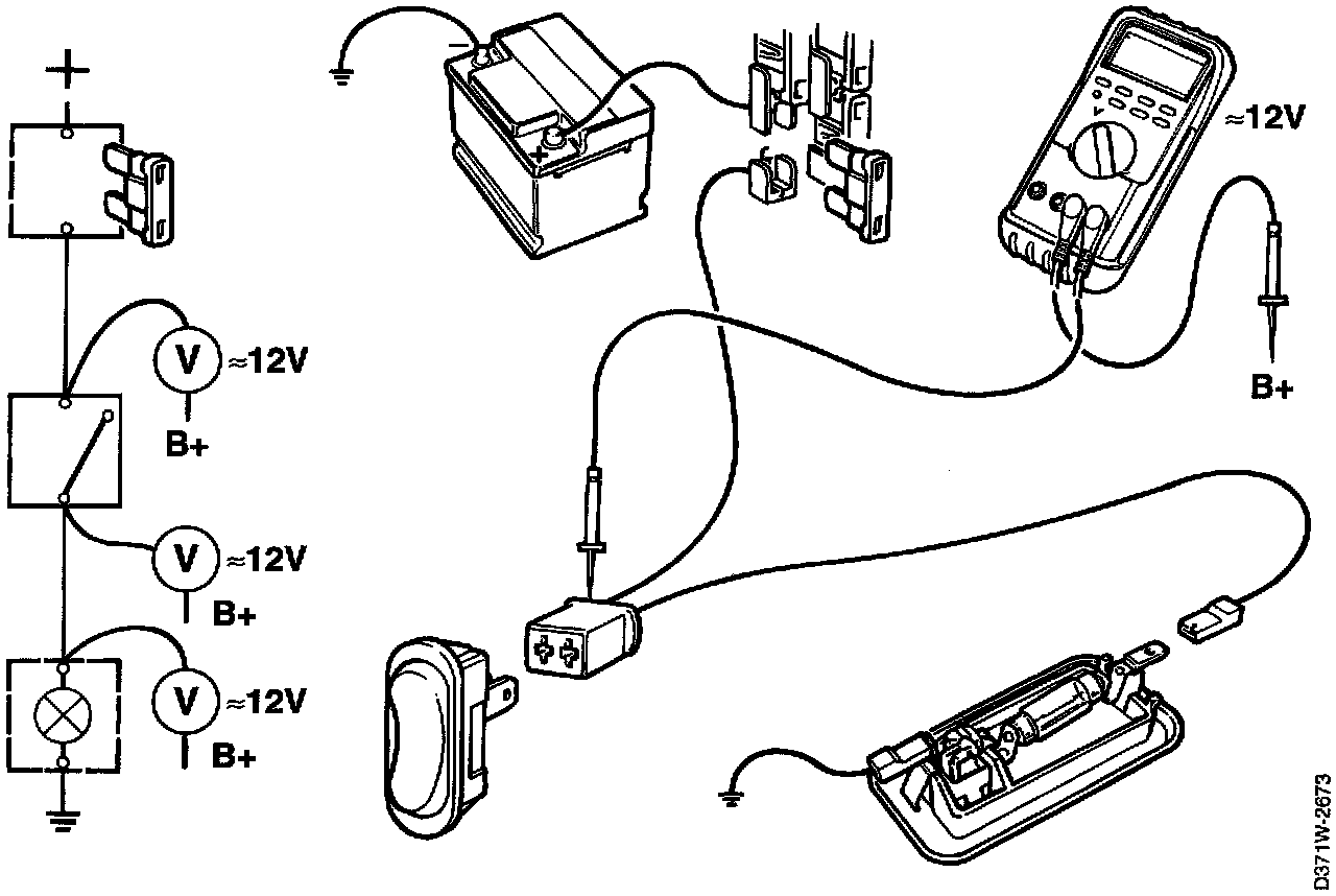 4 If the voltmeter shows a reading, it indicates that voltage is present at the point concerned.