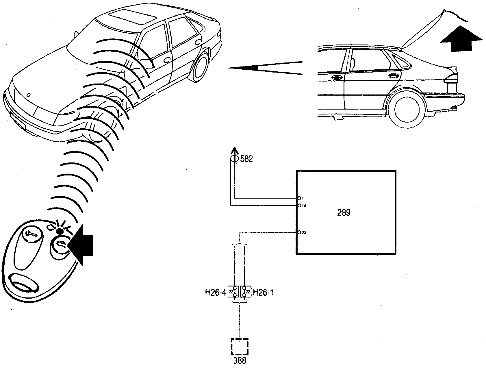 2 The car's theft alarm is then disarmed and all doors (except the tailgate) are unlocked by the central locking system which receives the unlock signal from the alarm control module (pin 6).