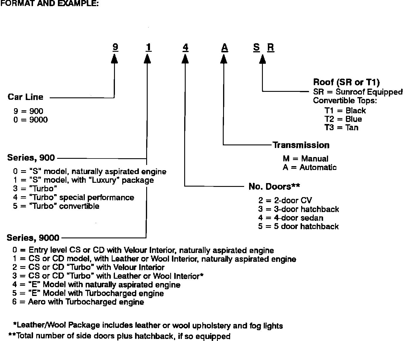 This model code scheme was instituted by Saab Cars USA, Inc. effective model year 1981 as an internal shorthand identifier system for car inventory control, ordering and technical follow-up. These codes are not for public recognition in lieu of actual model names.