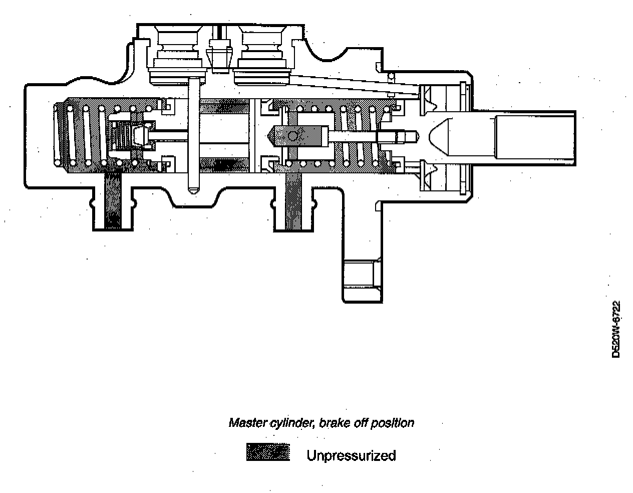 When the brake pedal is released, the pistons in the master cylinder return and open the return ducts. The pressure ceases and the brake pistons in each brake