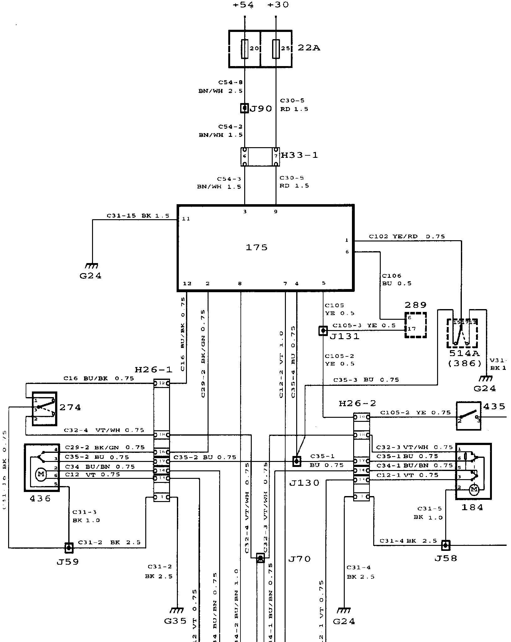 With the ignition switch in the Drive position, pin 3 of the control module is supplied with current (+54 circuit) via fuse 20.