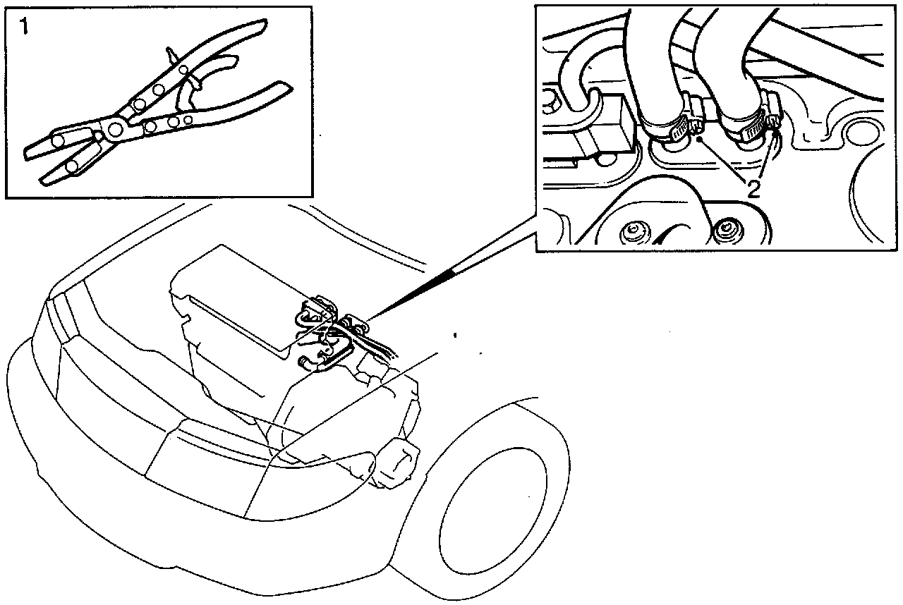2. Check that the 0-rings are in place and that they are undamaged. Refit the hoses and secure them with the clips.