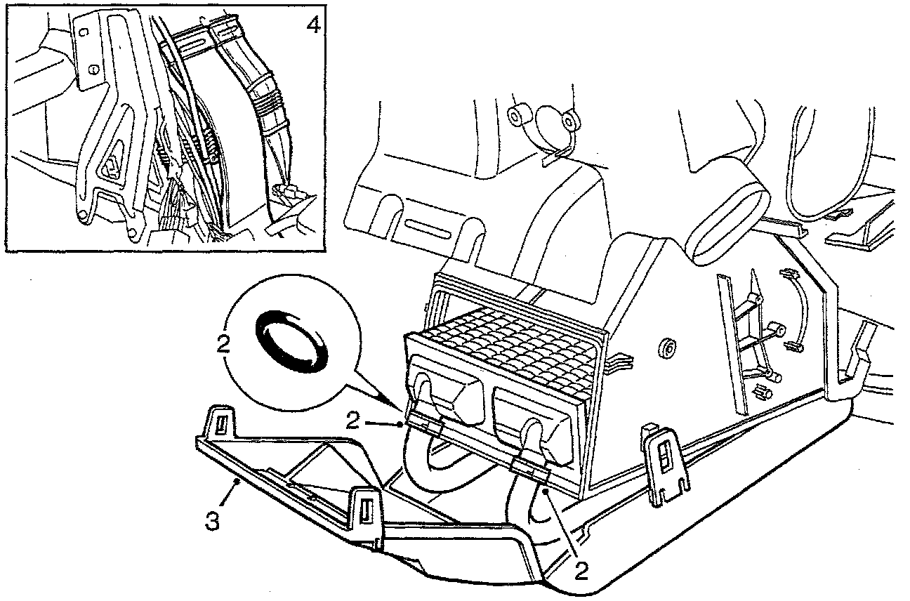 4. Refit the rear air ducts on the floor and secure them with a cable tie. Carry out the following operations: