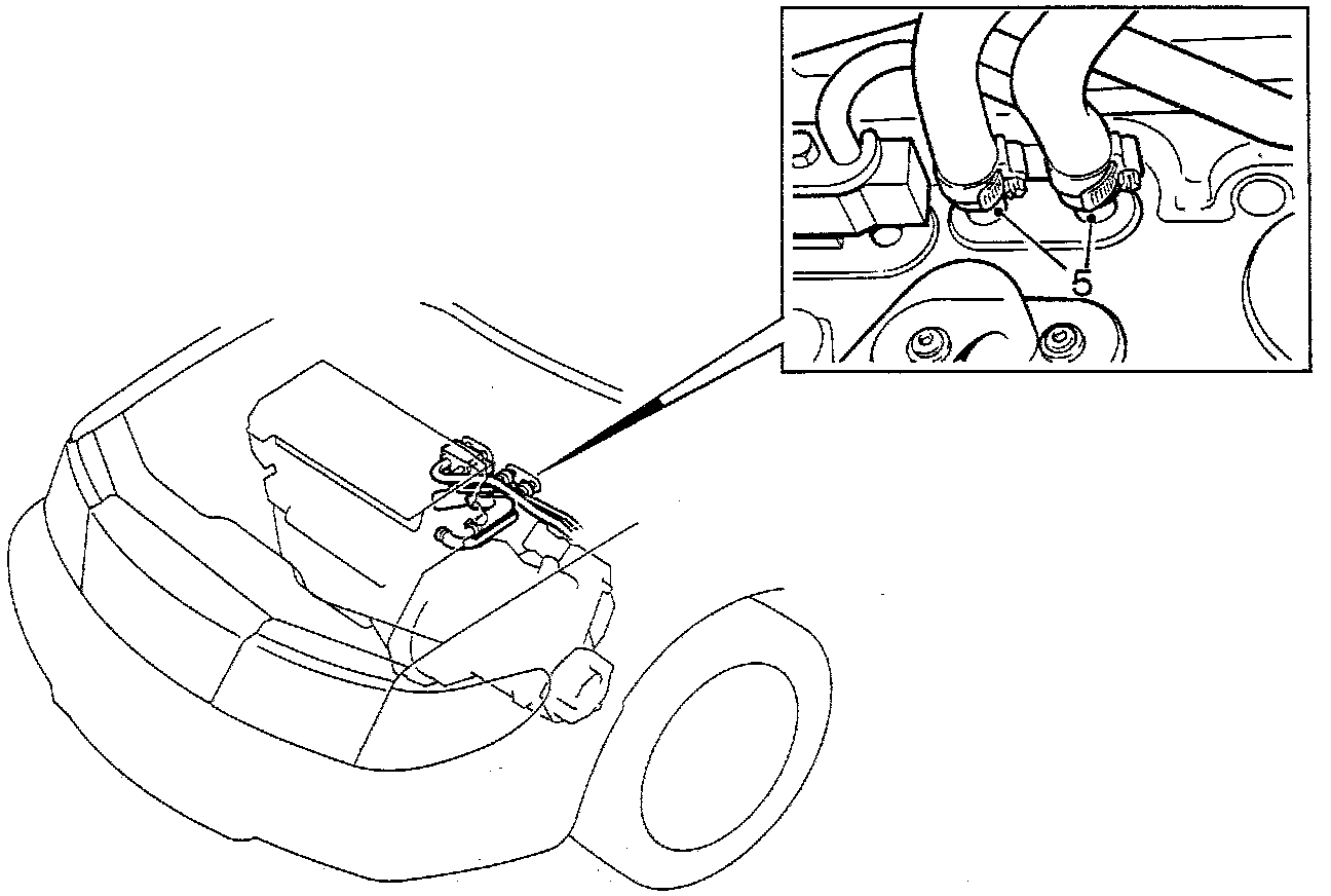 5. Refit the coolant hoses on the heater box and tighten the hose clips.
