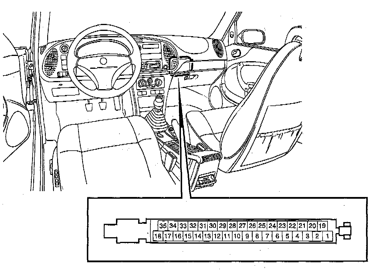 The transmission control module has a 35-pin connector and is situated behind the glove box in the cabin. It is programmed for the B204L, B234i or B258i engine and must be used only in a Saab 900 equipped with the appropriate engine version.