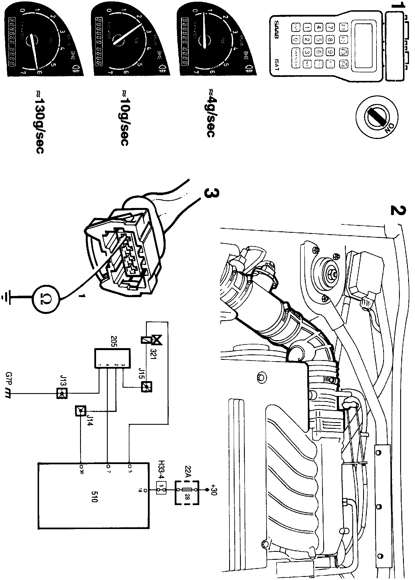 1. With the ISAT command "INDUCTION AIR MASS" in the "READ FUNCTIONS" menu, check that the following readings can be obtained on the display: