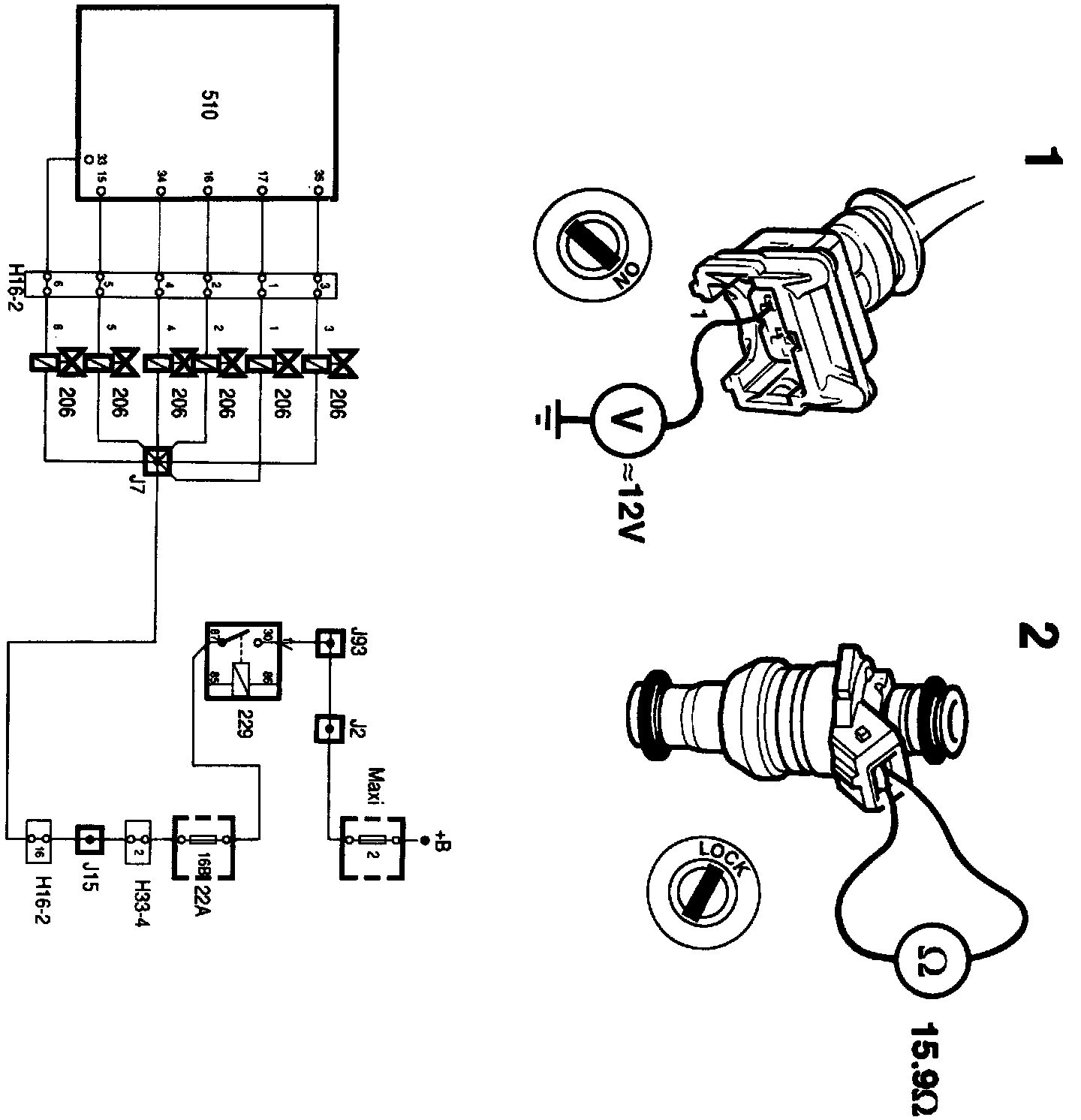 The resistance should be 5100 kOhms for injectors 1, 2, 4, 5 and 6.