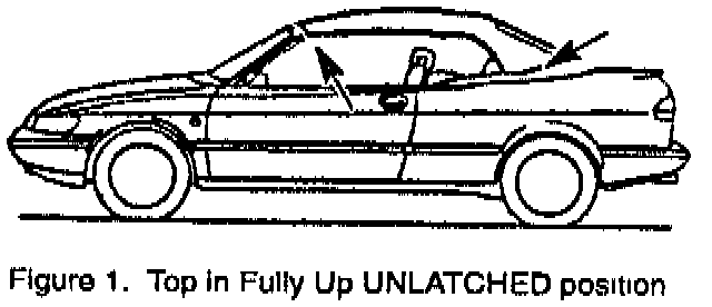 1. Place the top in the fully UP position but unlatched. Briefly press the roof switch to the rear to unlatch the 5th bow. Refer to Figure 1.