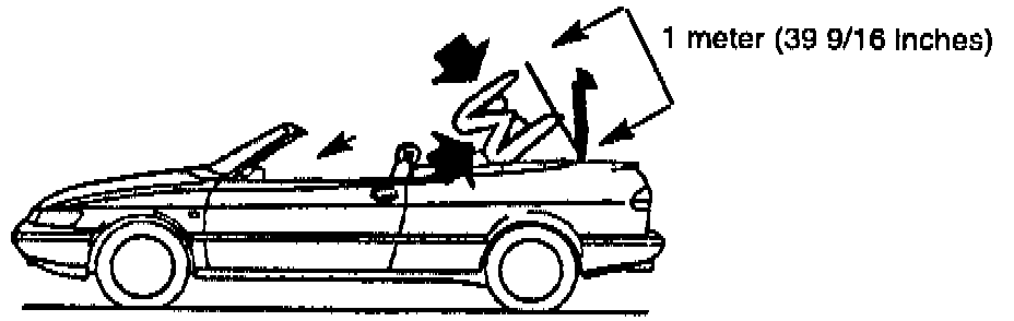 Press the roof switch in the center console forward until the top is lifted and the fabric edge of the 1st bow is 1 meter from the forward edge of the trunk lid. See Figure.