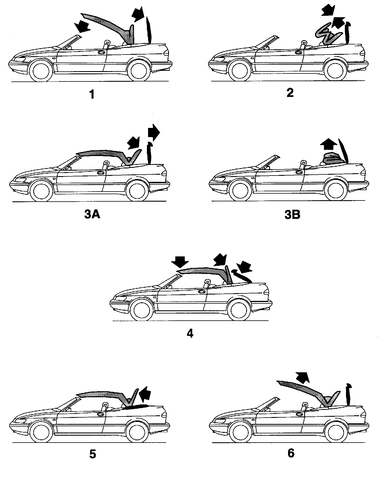 Note the difference between operating the hood with the ISAT scan tool and operating it with the ROOF button on the center console: With the ROOF button the hood moves to the programmed position while with the ISAT scan tool it moves to the mechanical stop. Unless otherwise stated, the ISAT scan tool should be used when the hood mechanism is operated during programming. When the hood is operated, keys F3 (UP) and F4 (DOWN) should be held down for at least five secondsafter all movement of the hood mechanism has ceased. This is to ensure that the end positions have definitely been reached.