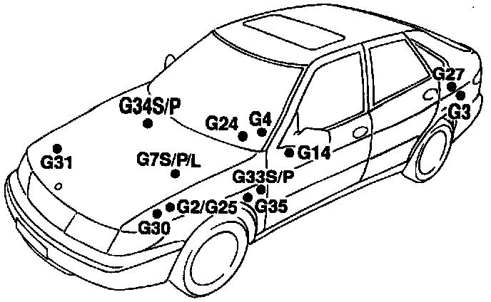 NOTE: Since the cars are available in different market versions, certain models might not have some of the grounding points listed.