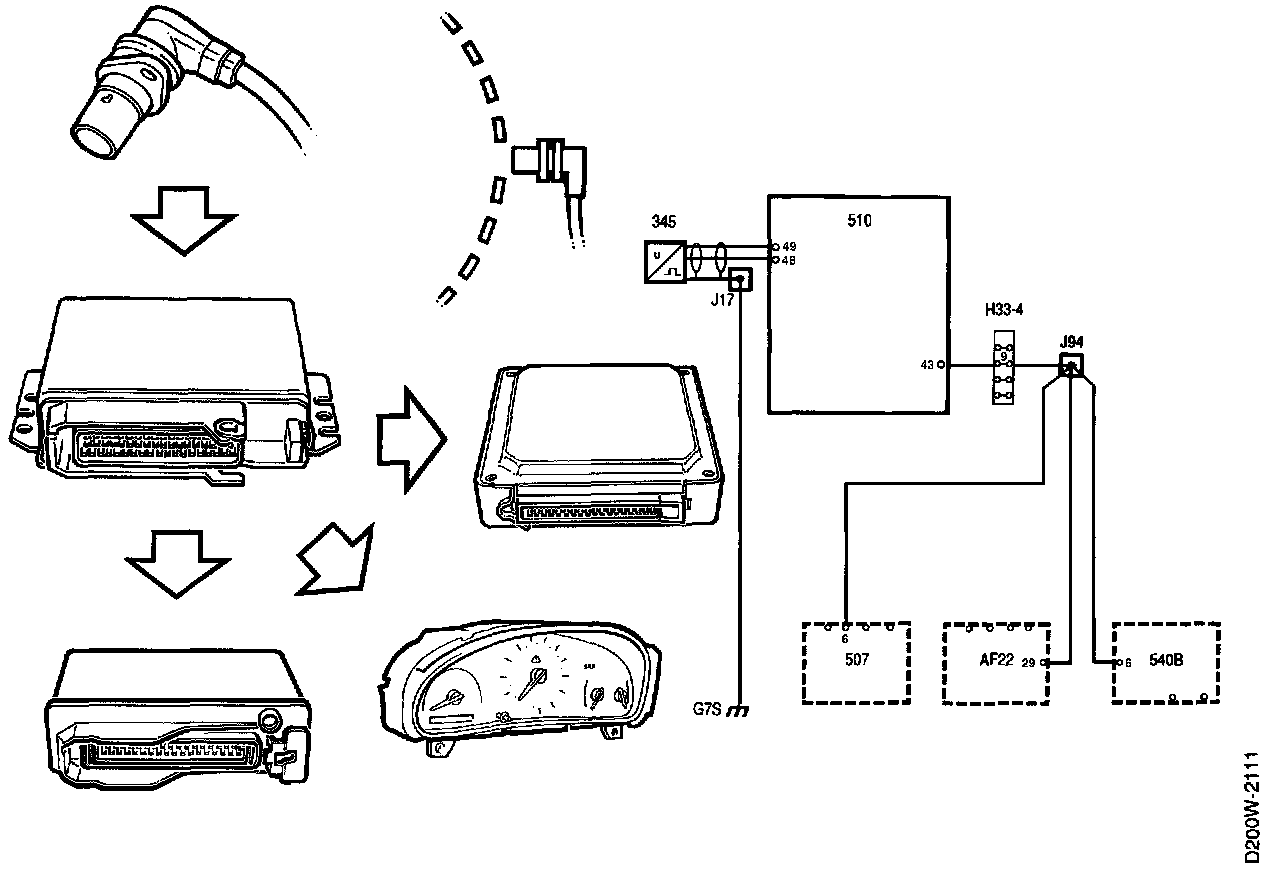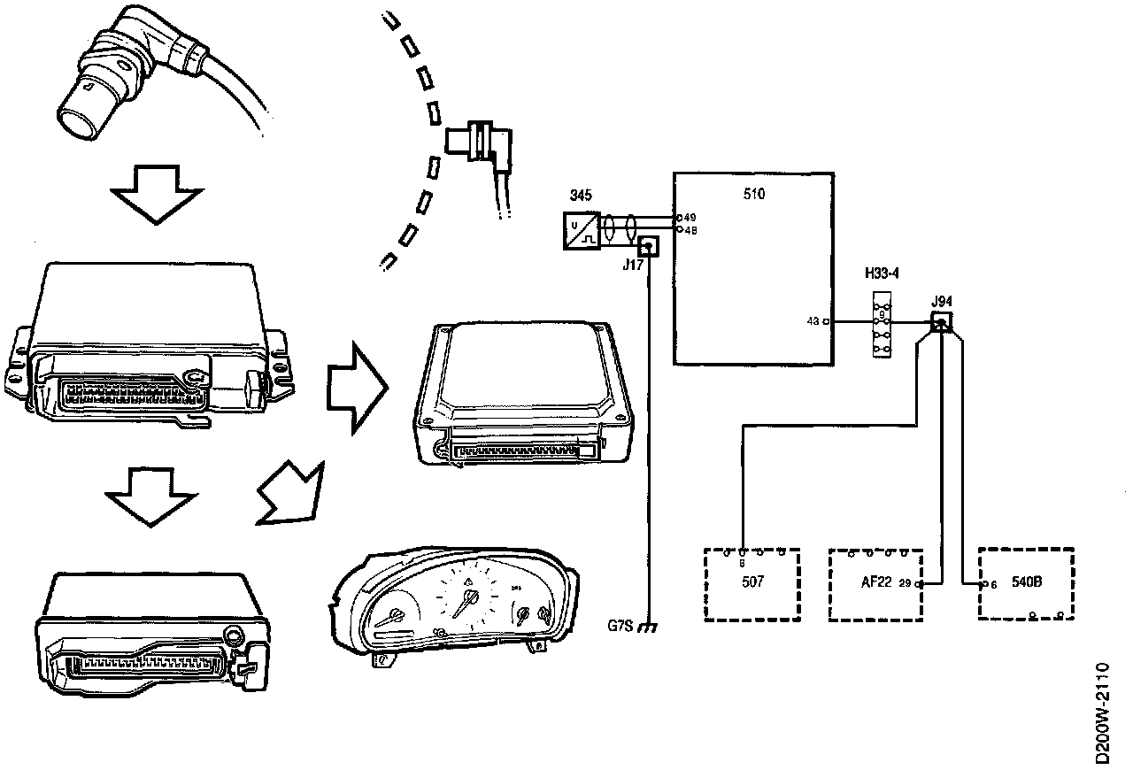 The signal is used by the rev counter as well as by the Traction Control System (TCS) control module and the automatic transmission's AF22 control module.