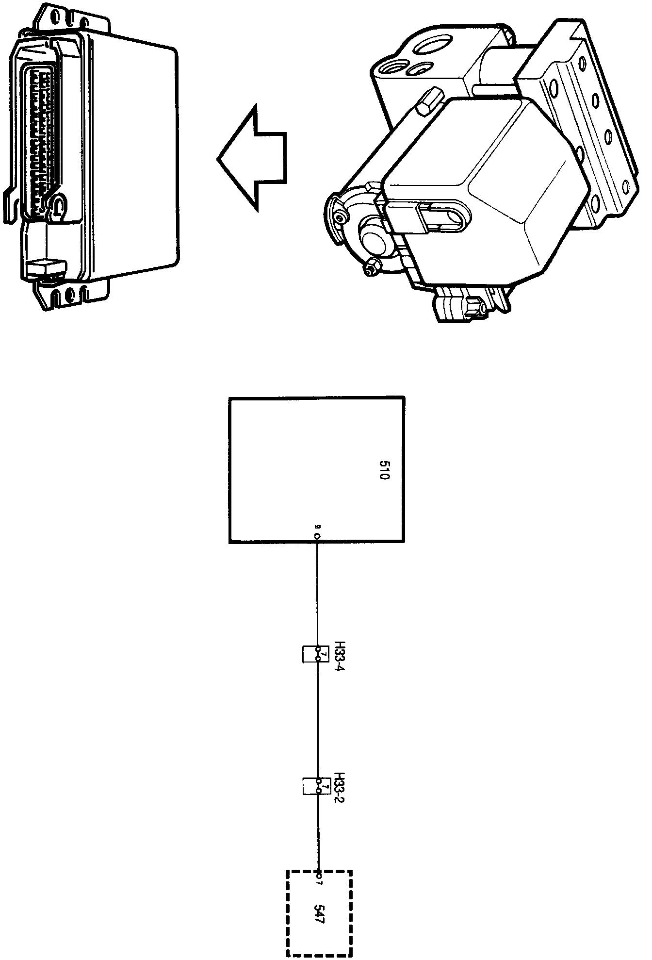 The speed signal is obtained from pin 7 of the ABS control module and applied to pin 9 of the MOTRONIC control module.