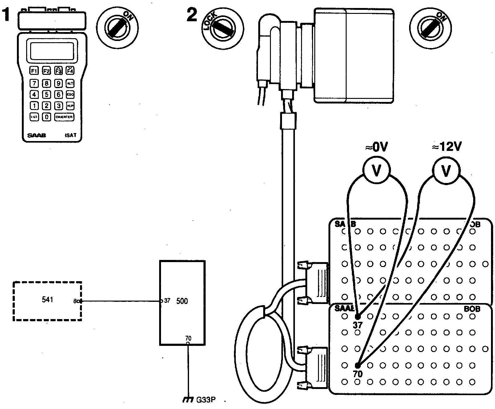 Select "ACT. INSTR. FUNCT on the Intelligent Saab Tester (ISAT) scan tool and then "SID OUTPUT" in order to make the output high and low.