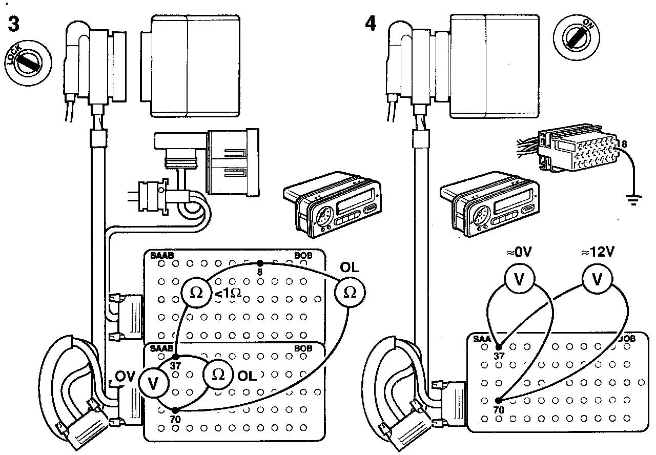 2 If no trouble codes are present, plug in a BOB and connect a voltmeter across connector pins 37 and 70.
