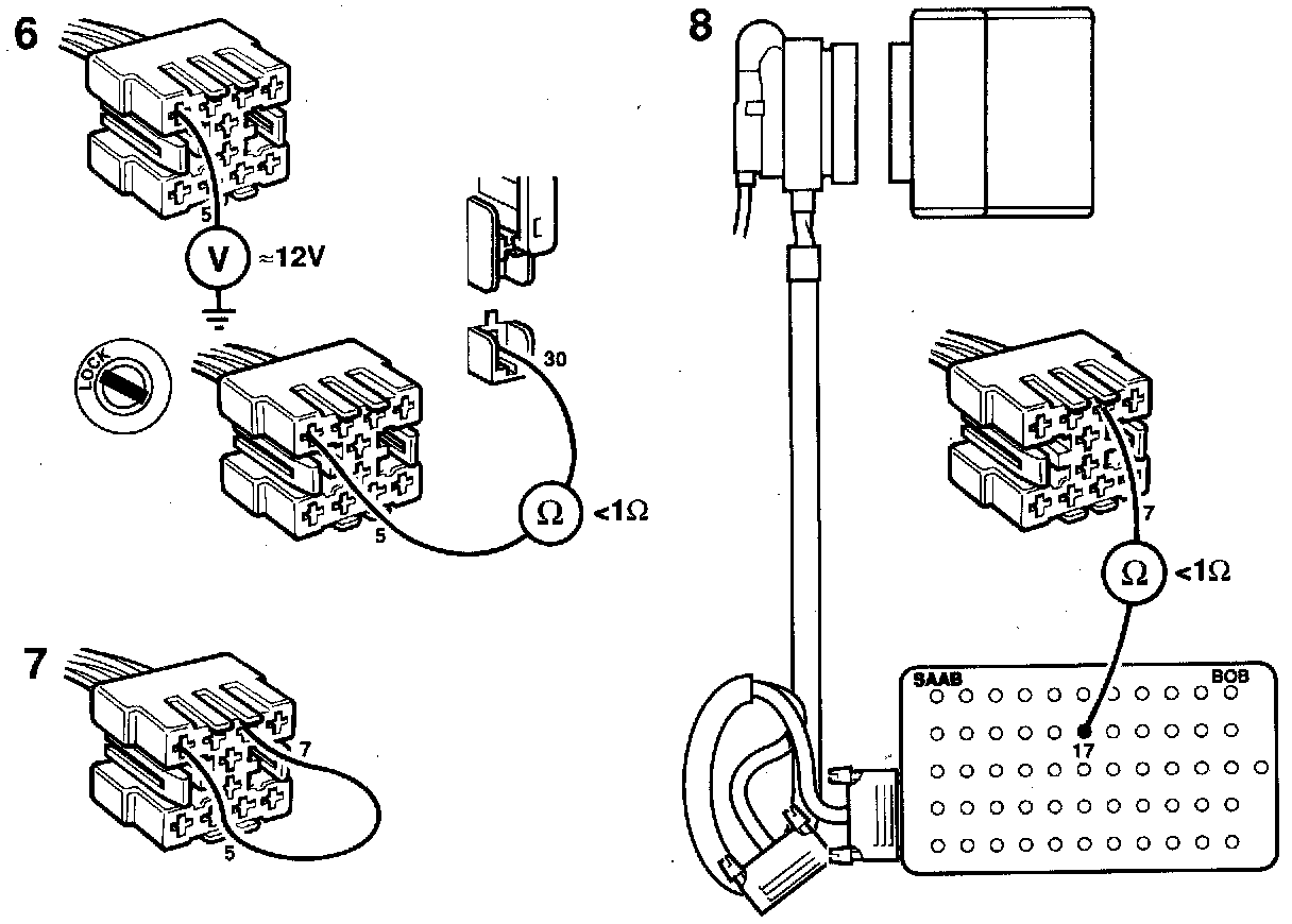 6 Check that 12 V is present between pin 5 of the switch connector and a good grounding point. If the voltage is correct, see point 7