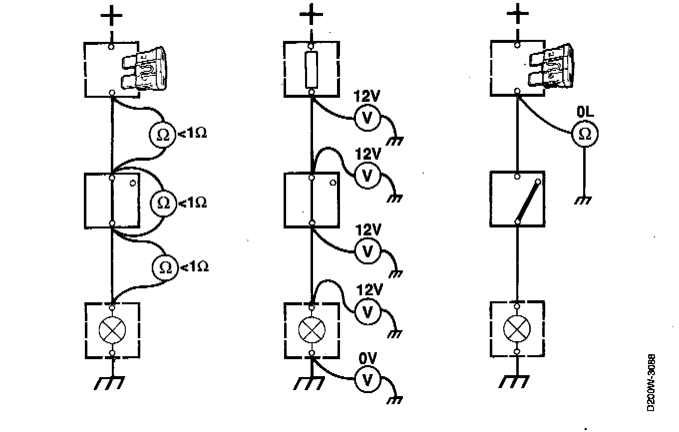 1. Make sure that the component or wire to be checked is not connected to the power supply.