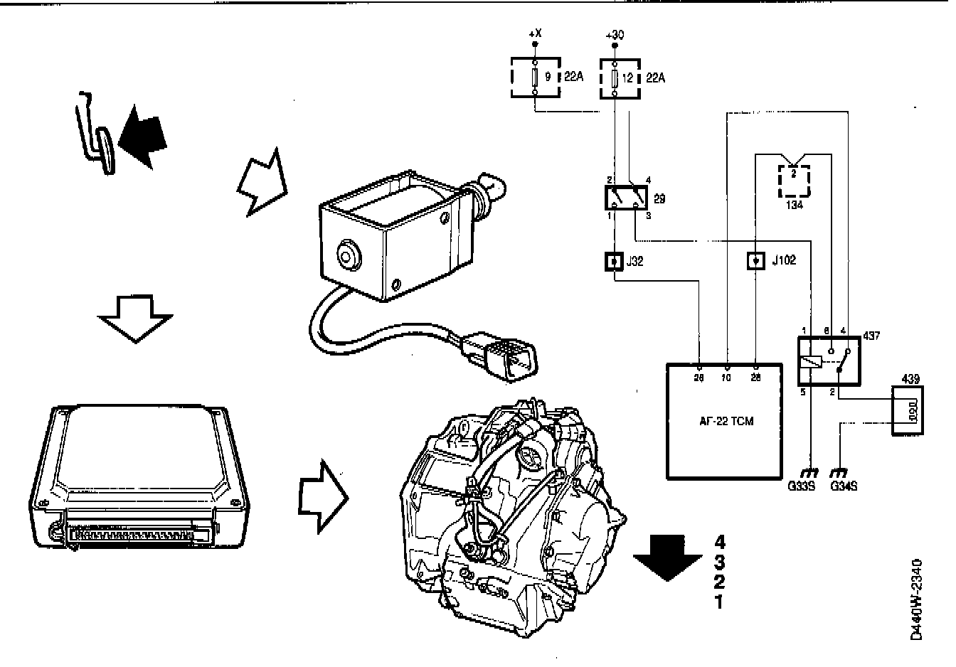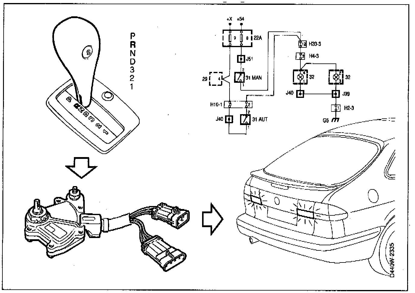 If a fault should occur in the transmission control module or in any of the sensors, the system goes into an emergency operation program, the limp-home mode. It is then only possible to run the car in 3, 4 and R gears by moving the selector lever manually between these positions.