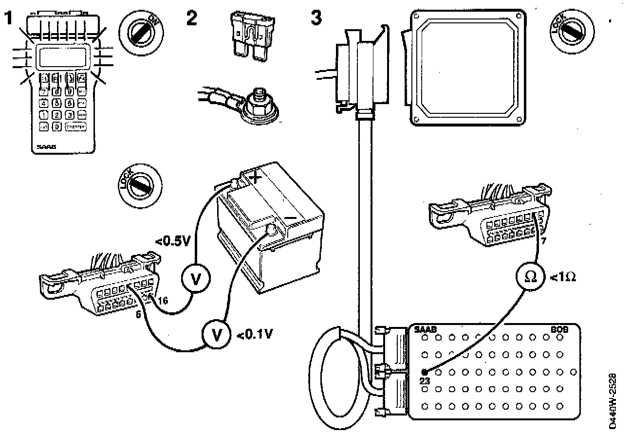 If the ISAT display remains dark, check the voltage and the ground connections to diagnosis connector H16-1 and remedy any faults.