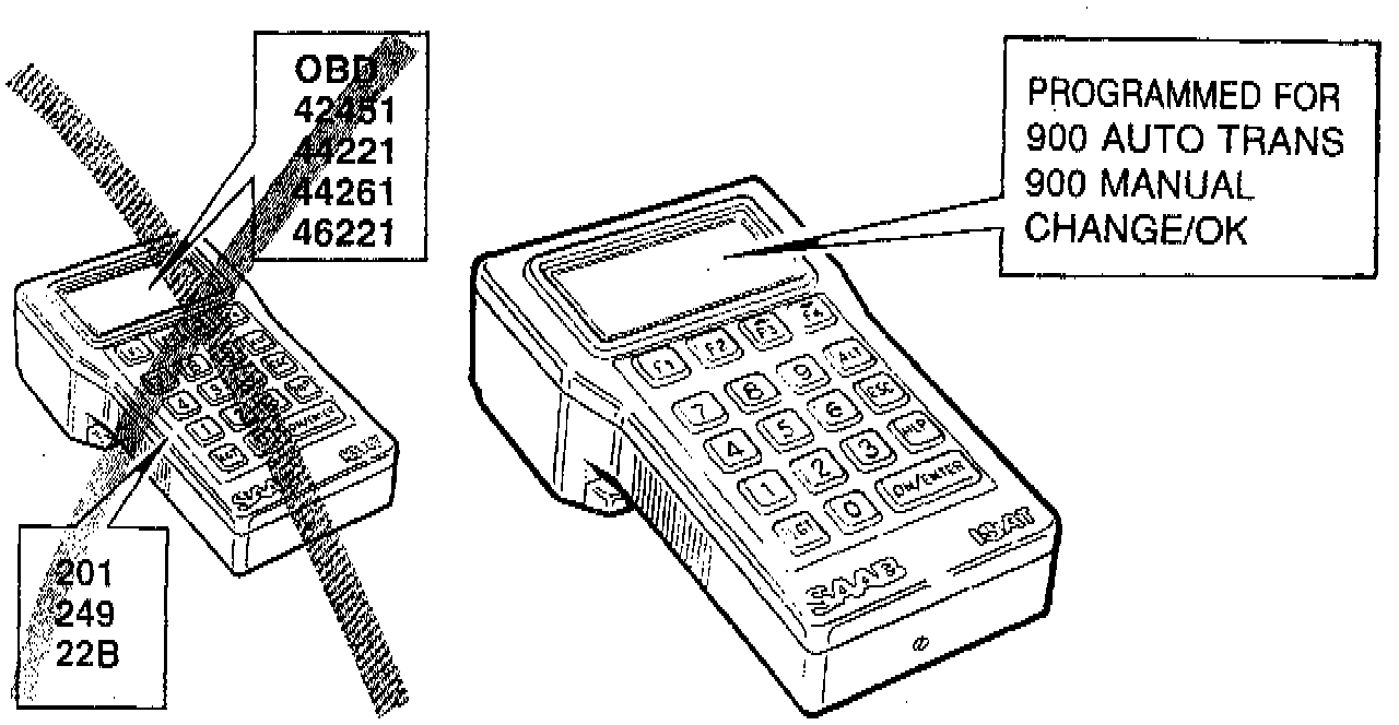 With the new EPROM which has been designed for ISAT scan tool for the 1994 model there is a completely new system for command codes. Previously a code with three figures has been used to read or to activate signals and functions. From M94 this has been replaced by a system in which text under a number of menu alternatives makes it simple to select the desired command via the keyboard.
