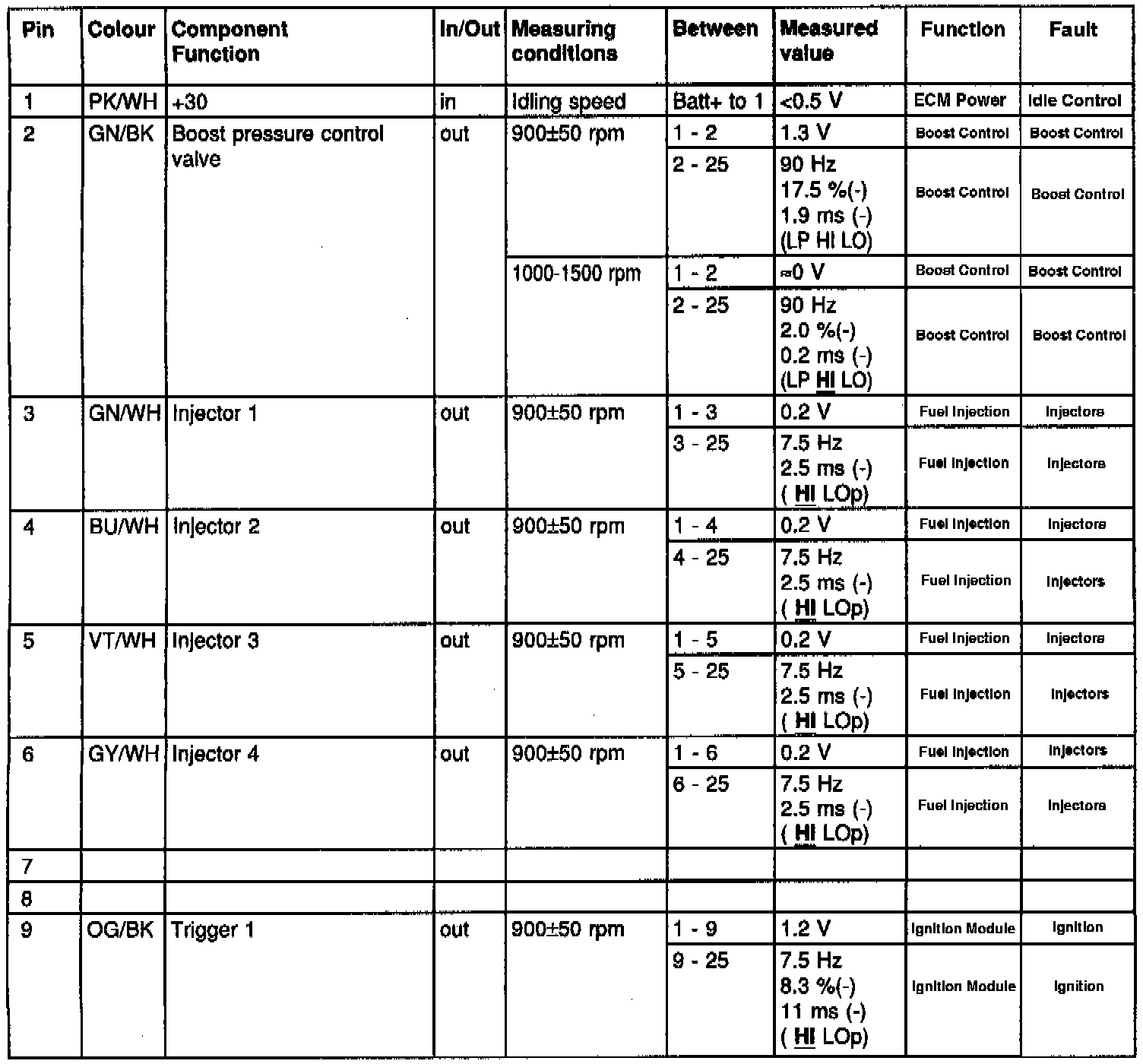 ECM Pins 1 - 9
