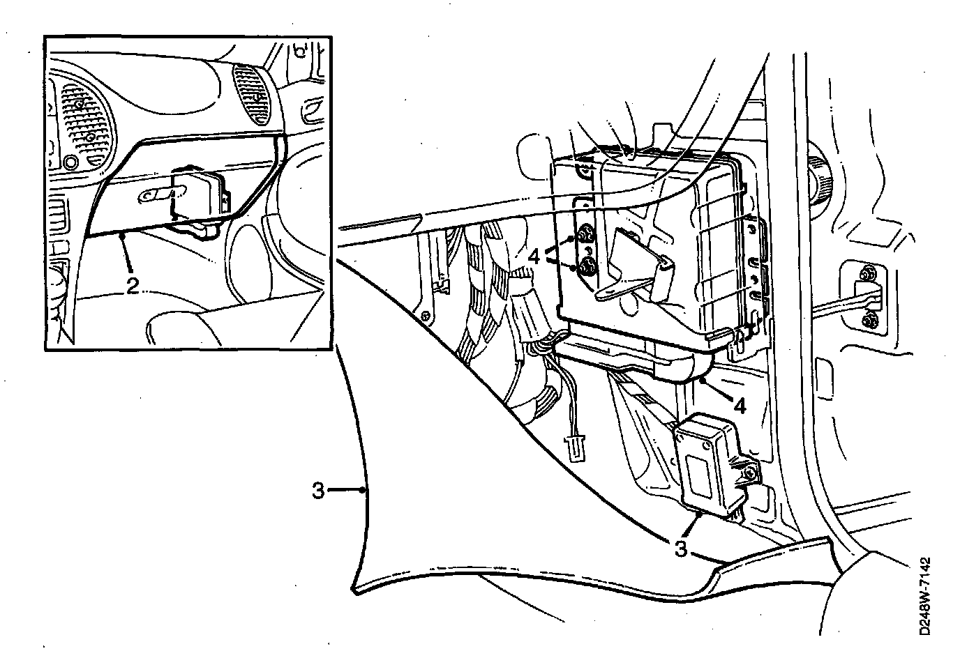 3. Bend aside the carpet and remove the central locking relay.