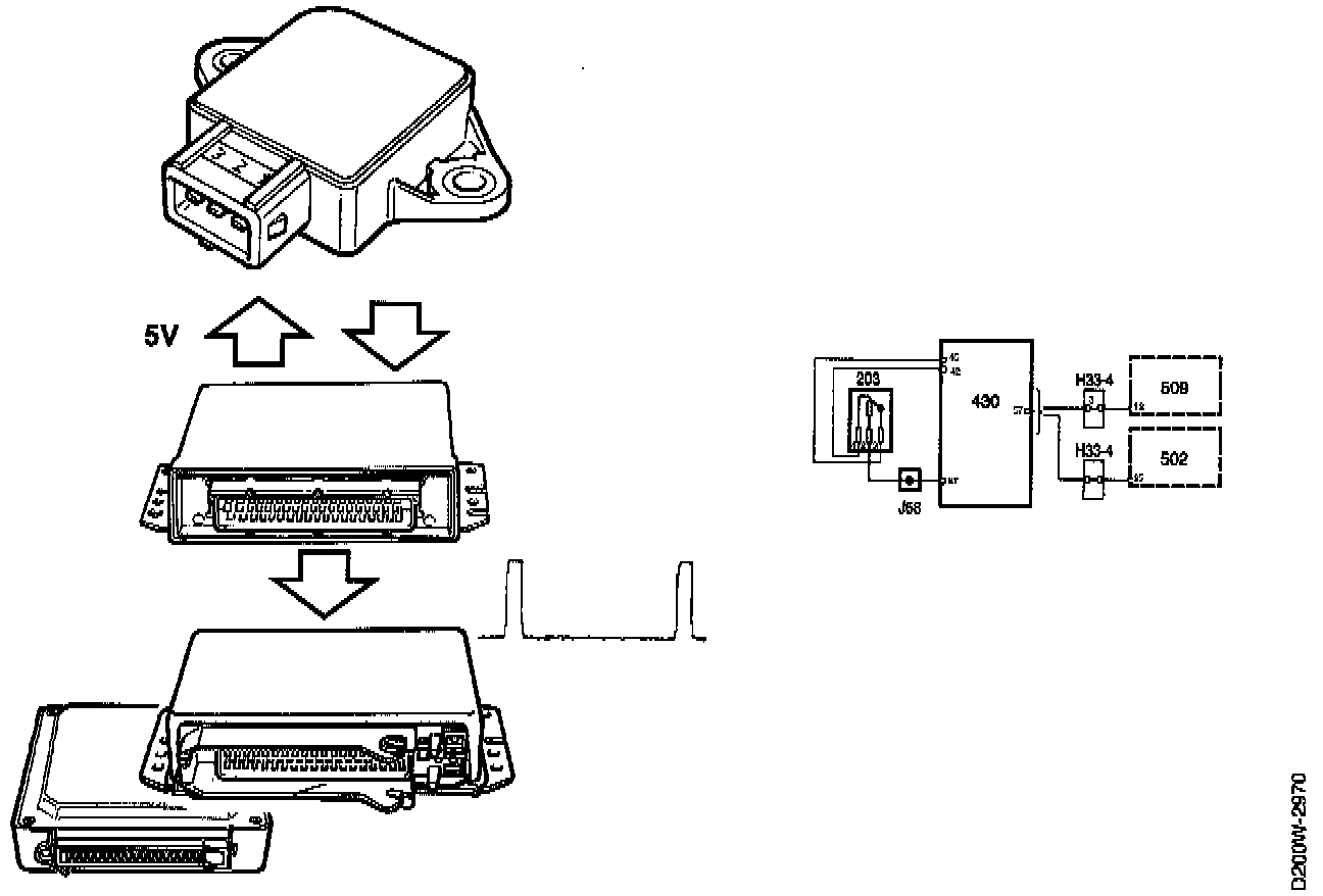 With the ignition switched on and the engine stopped, the pulse ratio is 2-7 % and represents the engine coolant temperature.