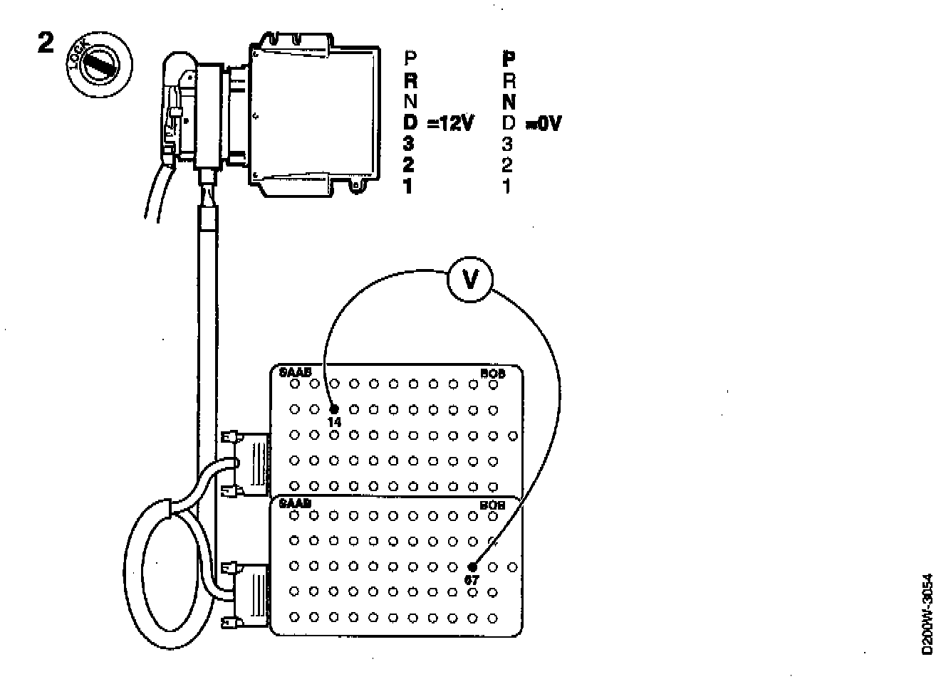 The nominal value is 0 V with the selector lever in position P or N and 12 V with the selector lever in positions R, D, 3, 2 or 1.