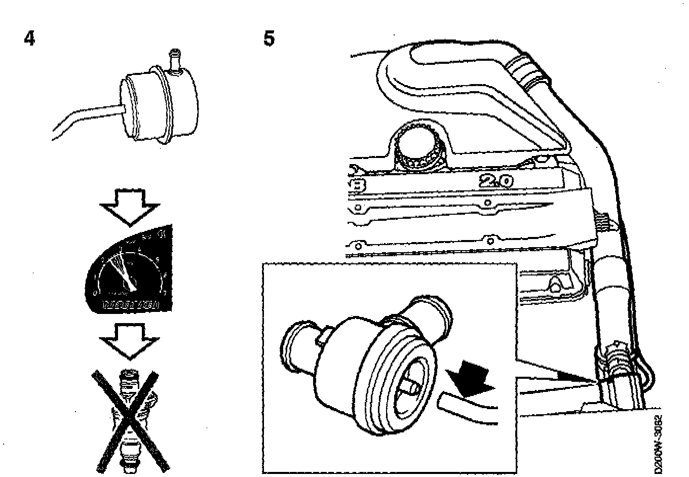 Disconnect the hose to the wastegate. At wide open throttle, the pressure switch function must operate before approx. 3000 rpm. If so, faults in the above system can probably be ruled out. Activate "RESET BOOST PRESSURE" with an ISAT after this test.