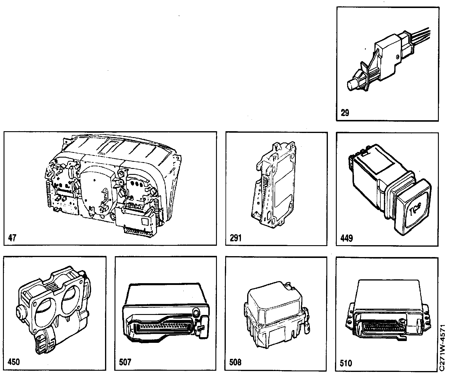 507 TCS control module, V6, under left-hand seat.