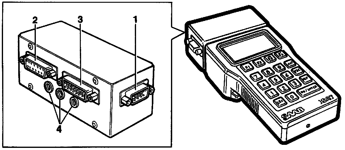 3. Connector, 15-pin D-Sub for communication with the car's 16-pin diagnostic connector (900 -M93, 9000 -M95)