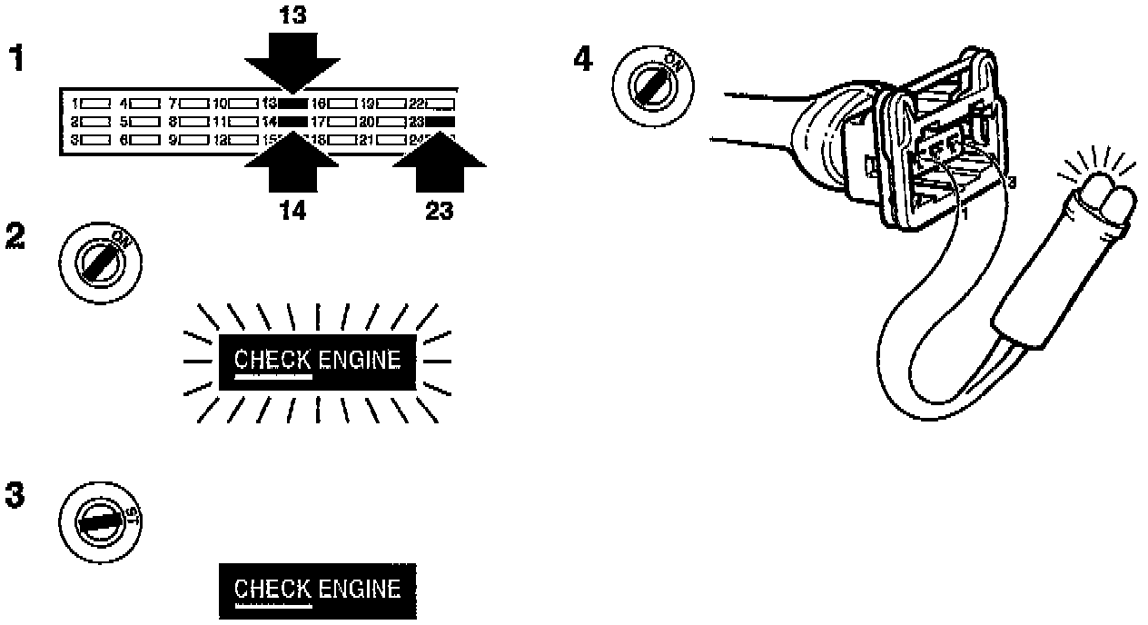 If the CHECK ENGINE lamp does not light up, there is no +15 supply present on pin 27 or +30 supply present on pin 18 of the control module.