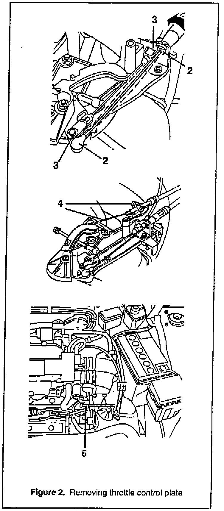 5. Remove the link rod from the throttle arm by releasing the plastic clip and lifting the link rod away. See Figure 2, point 5.