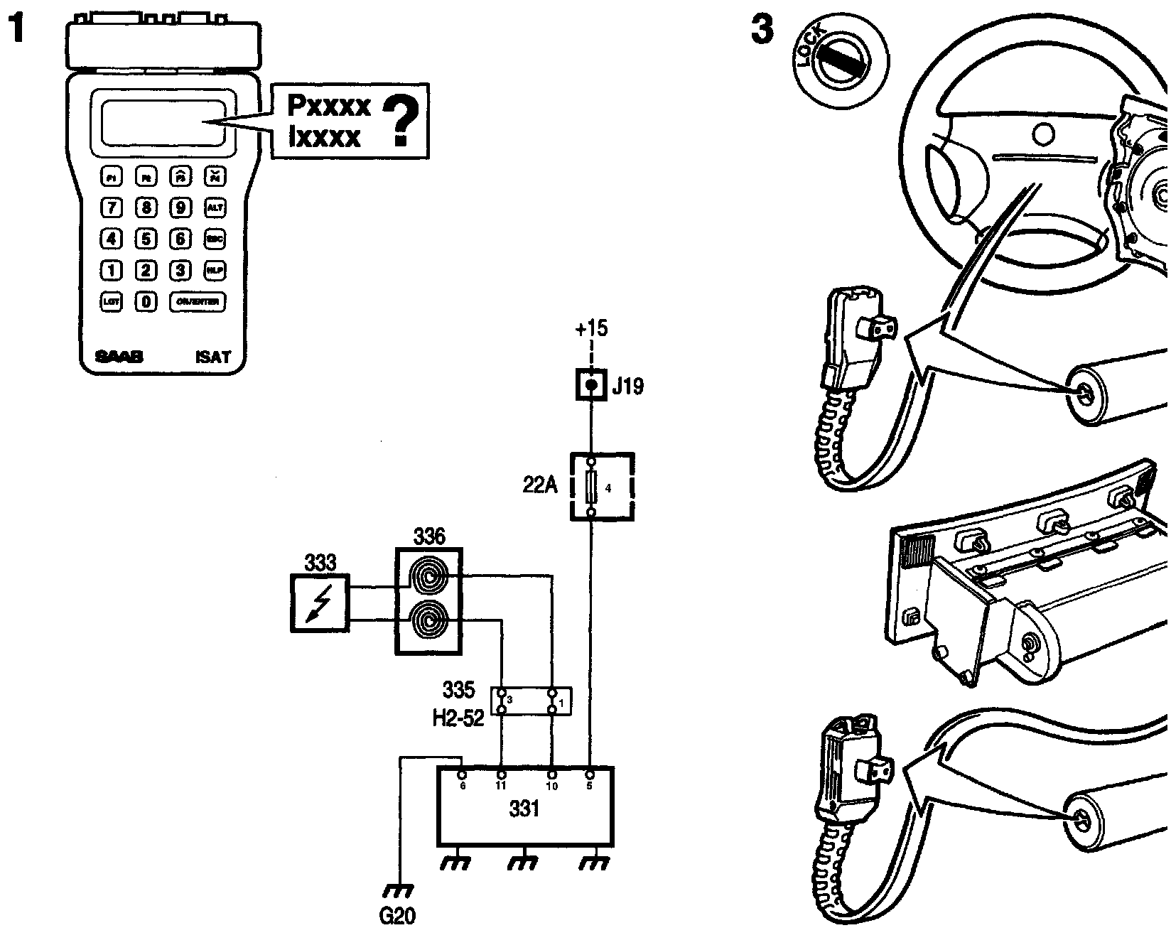 1. Connect ISAT Note the diagnostic trouble code and the type of fault. P=permanent fault, 1= intermittent fault.