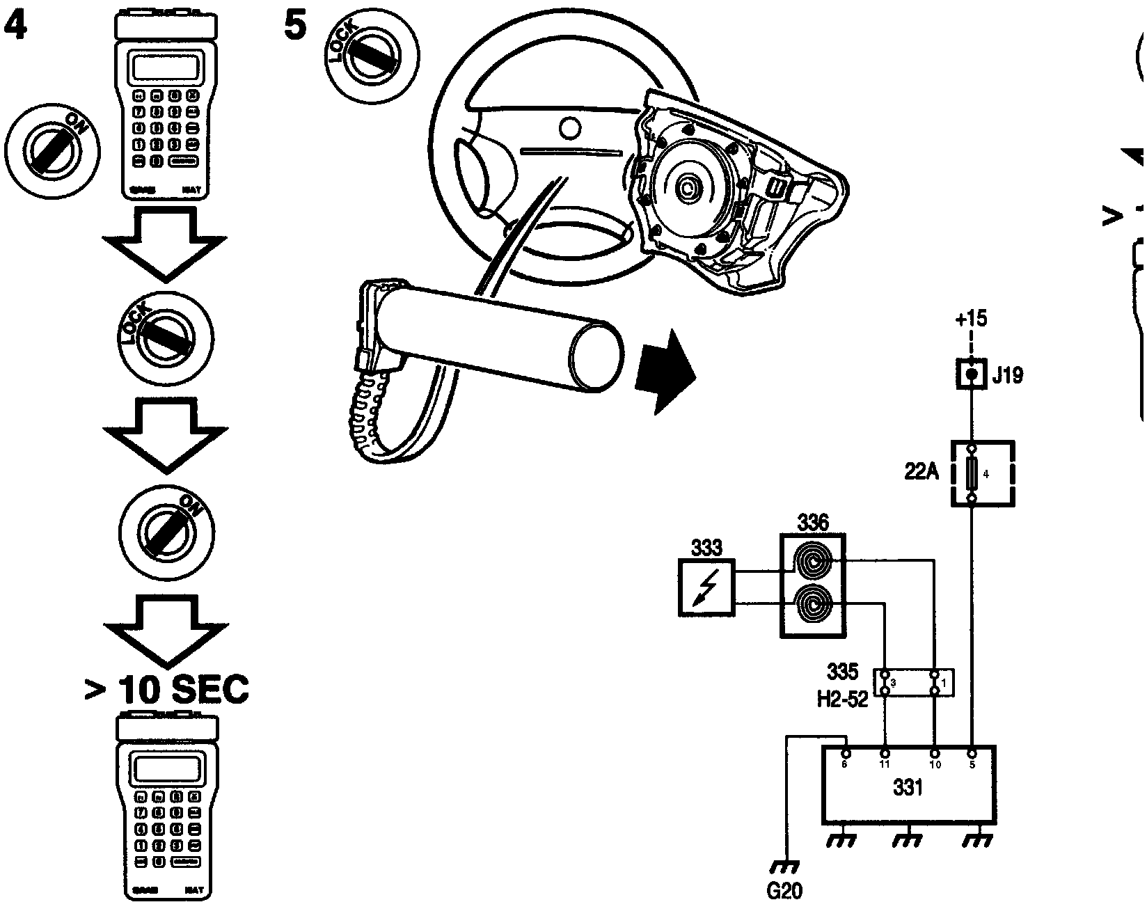4. Reconnect the negative battery lead and switch on the ignition. Erase diagnostic trouble code. Switch off the ignition and switch it back on, wait for at least 10 seconds with the ignition on.