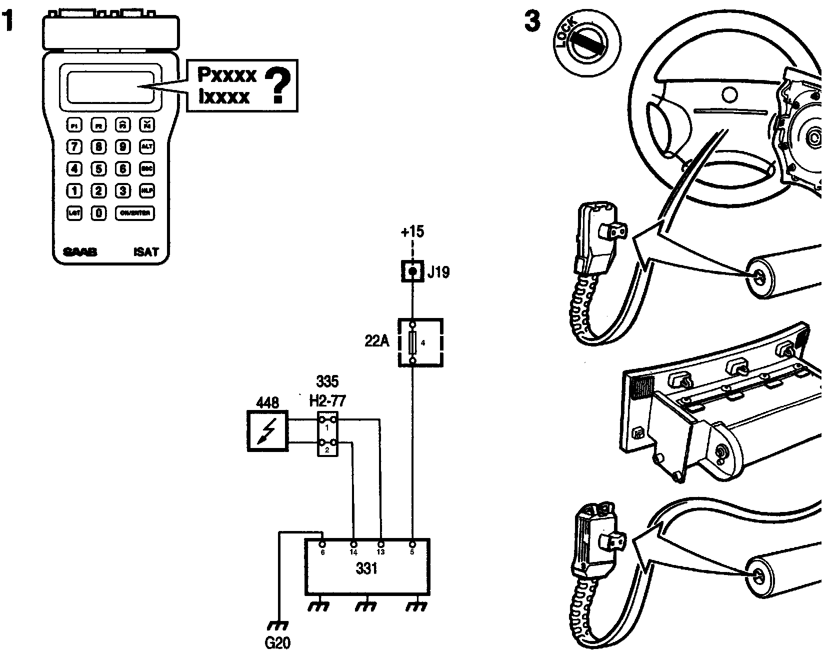 1. Connect ISAT Note the diagnostic trouble code and the type of fault. P=permanent fault, I= intermittent fault.