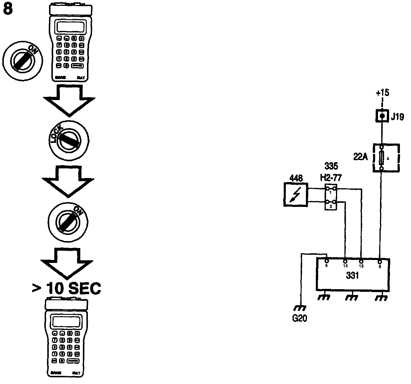 Erase diagnostic trouble code. Switch off the ignition and switch it back on again. Wait for at least 10 seconds with the ignition on.