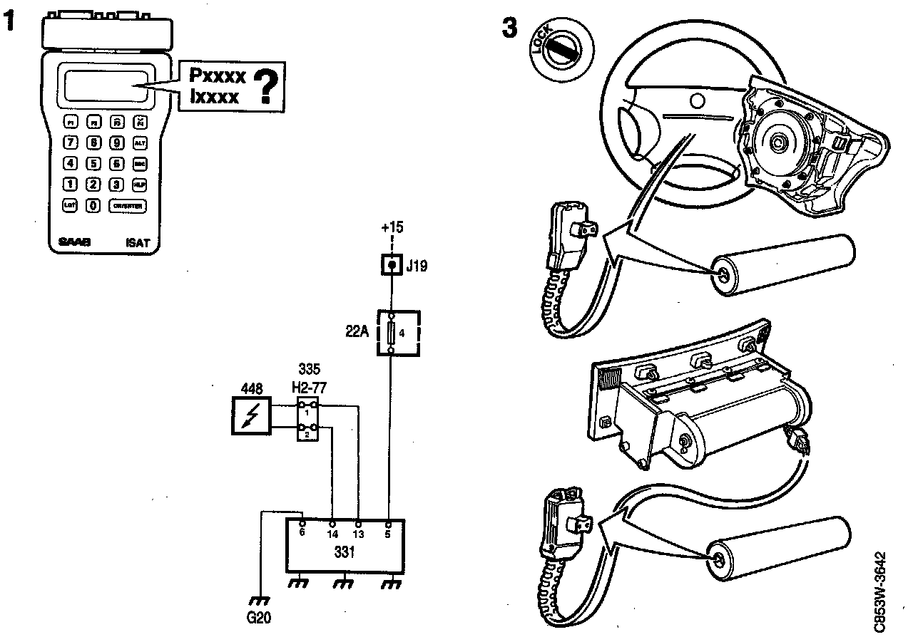2. The fault is intermittent: Try to expose the fault when taking each reading during fault tracing. Manipulate the connectors and cables and turn the steering wheel when taking measurements.
