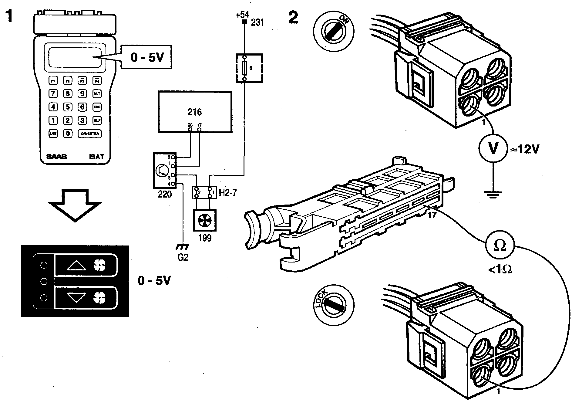 1 Connect the ISAT scan tool and read "FAN CONTROL VOLTAGE".