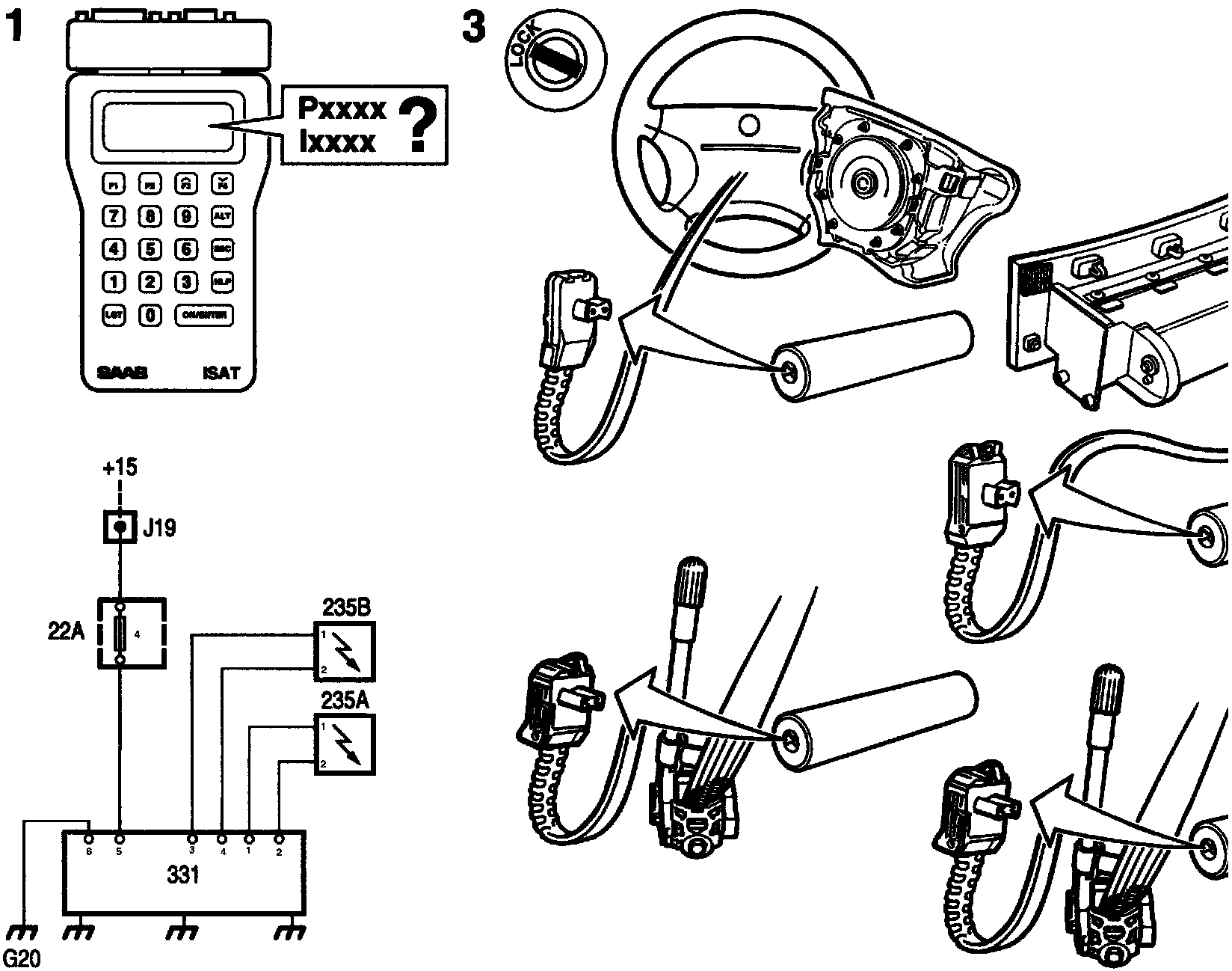 1. Connect ISAT. Note the diagnostic trouble code and the type of fault. P=permanent fault, I=intermittent fault.