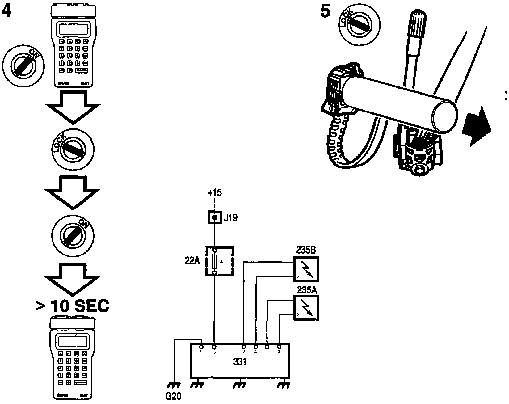4. Reconnect the negative battery lead and switch on the ignition. Erase diagnostic trouble code. Switch off the ignition and switch it back on again. wait for at least 10 seconds with the ignition on.