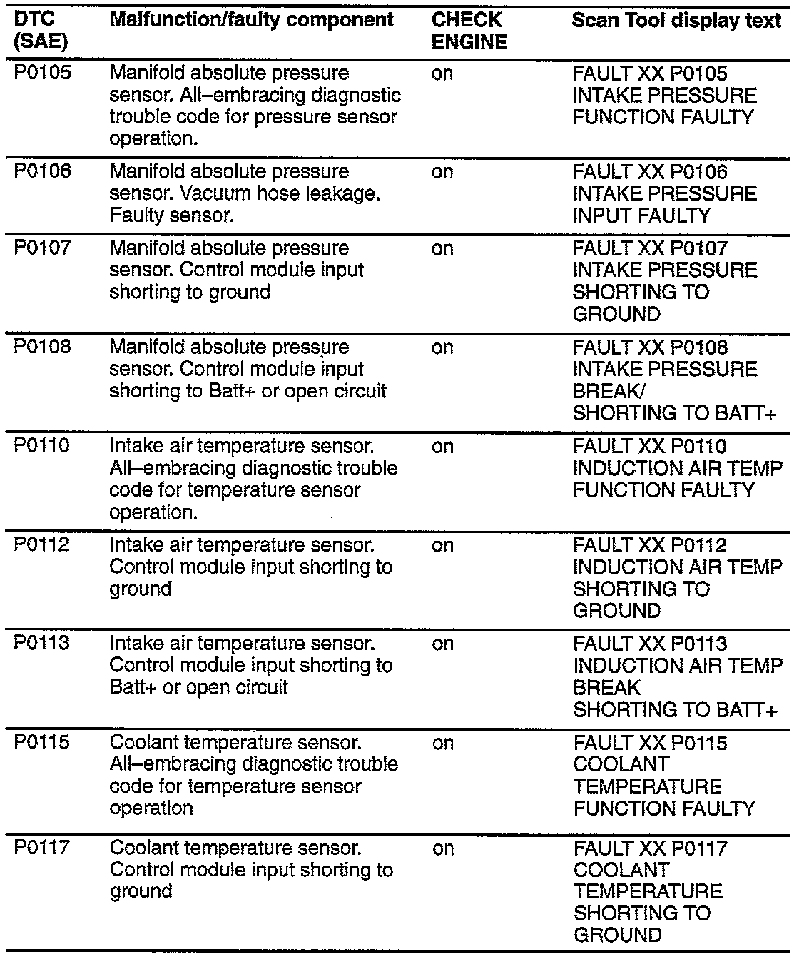 P0105 - P0117