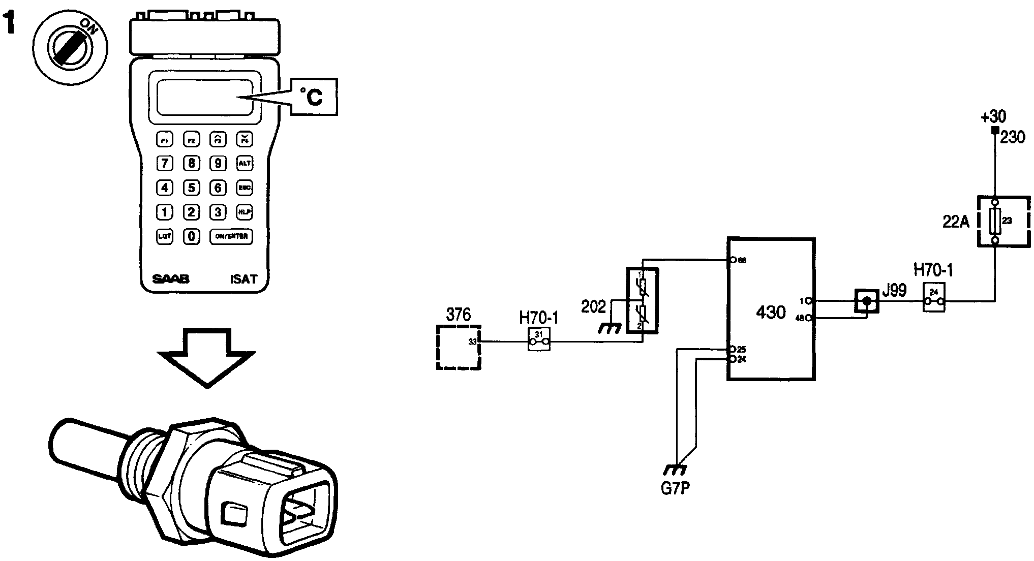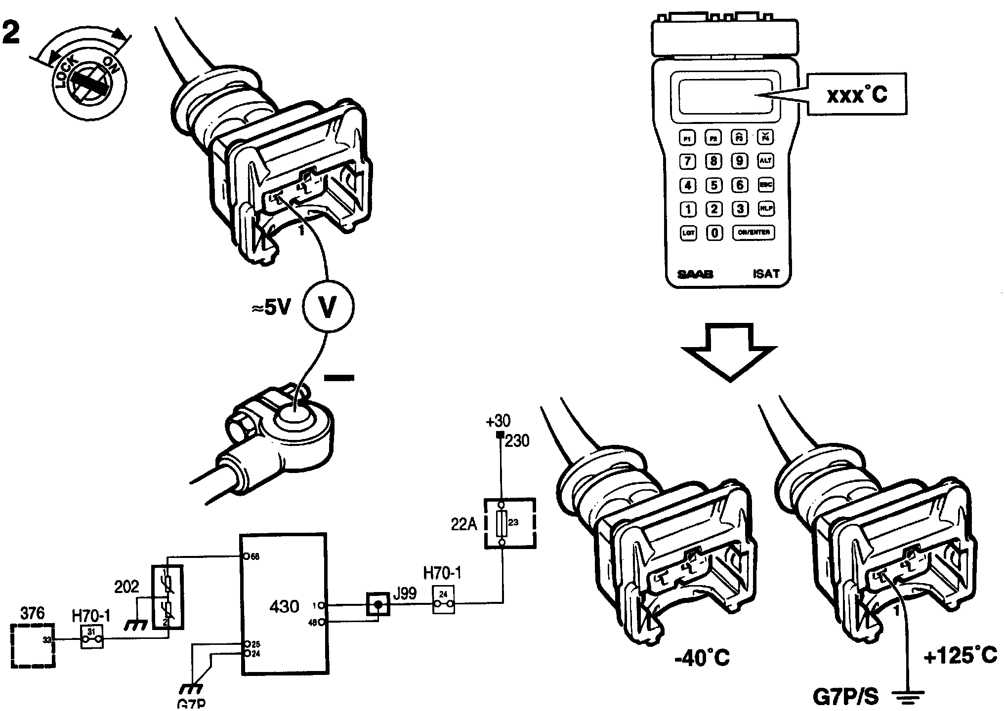 Important: Cars with ETS have a temperature sensor equipped with double NTC elements. The temperature sensor has a 2-pin connector in which pin 1 is the coolant temperature input for the Trionic system and pin 2 is the coolant temperature input for the ETS.