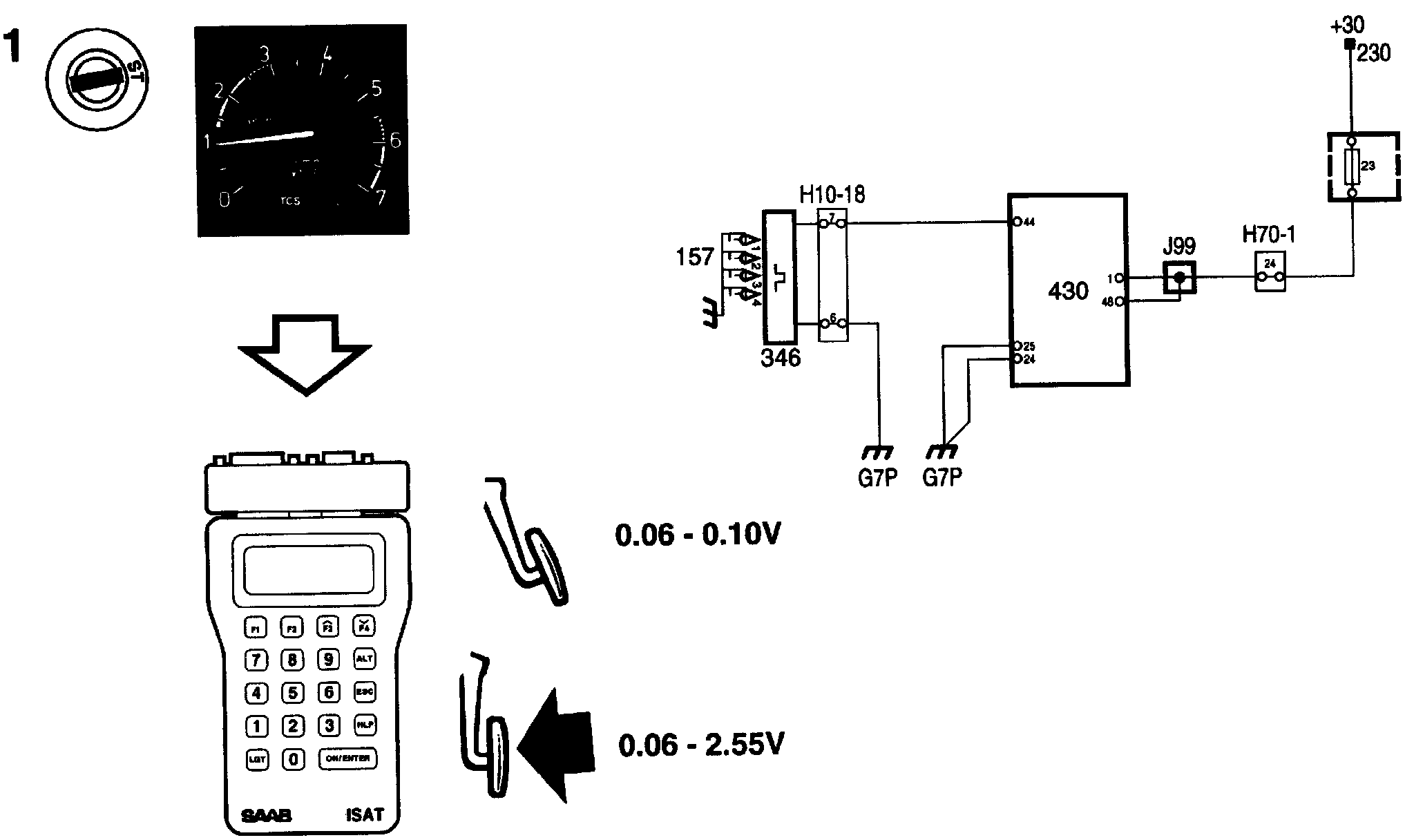 The reading shows whether or not a signal is present. If there is an open circuit in the signal lead, a reading of 0.06-0.08 V will normally be obtained, regardless of the accelerator position.