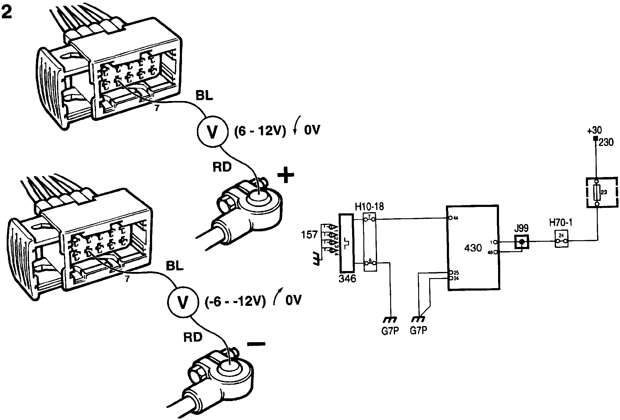 - Battery positive and connector pin 7