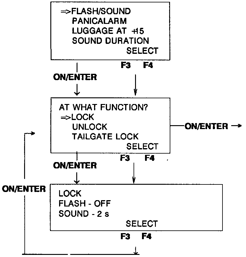If "ADJUSTMENT" is selected in the programming menu in "Remote Control : Adjusting Flash/Sound Confirmation", new settings can be made as described below. These settings will then apply.
