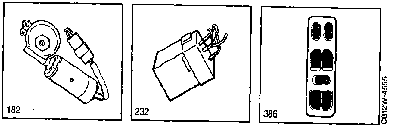 386 Switch, electric window lifts and sunroof, on the centre console between the front seats.